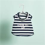 Sleeveless Top features a refined combination of modern navy stripes and soft indie pink embroidery.